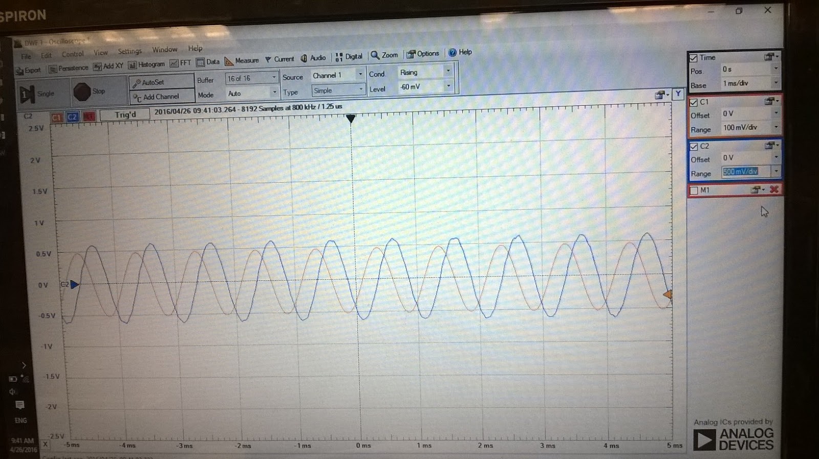 Figure 2: A Sinusoidal Input voltage of 1 KHz |